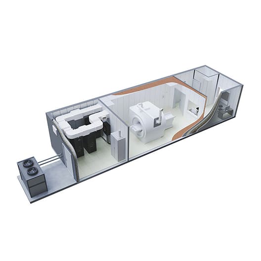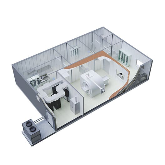 Для размещения оборудования магнитно-резонансной томографии. Полностью автономный комплекс.