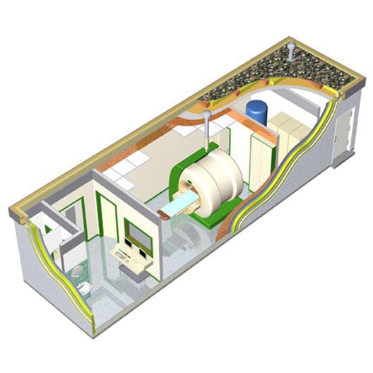 Прочность конструкции. Модульные здания для размещения МРТ должны обладать повышенной устойчивостью. Вес самого аппарата МРТ может достигать нескольких тонн, что предъявляет высокие требования к фундаменту и каркасу здания. Для обеспечения надёжности конструкции используют сталь или армированный бетон, что позволяет выдерживать значительные нагрузки.